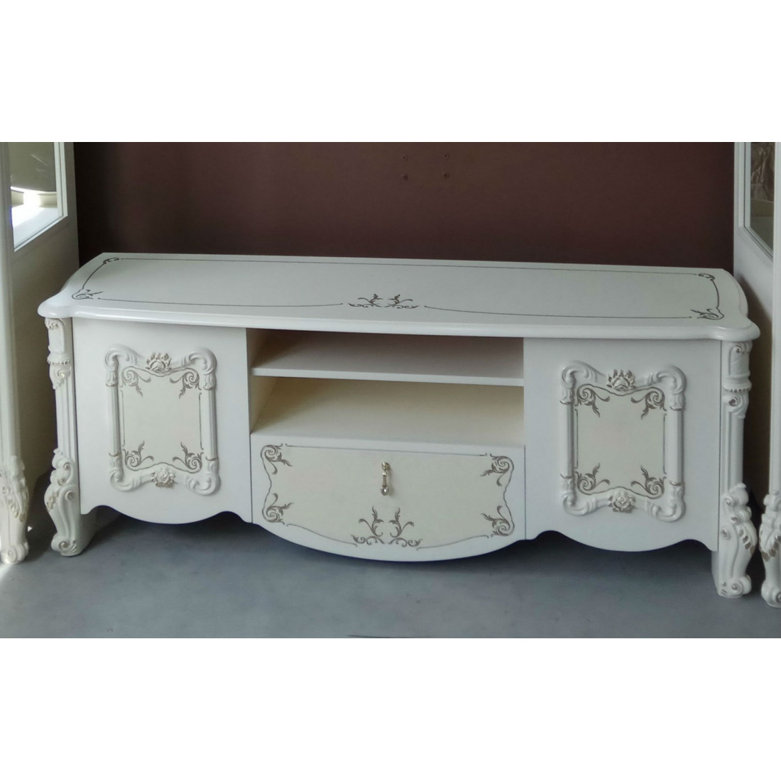 Тумба под телевизор (беж) Рафаэлла от Российской фабрики «ДИА мебель», выполнена в элегантном бежевом цвете.